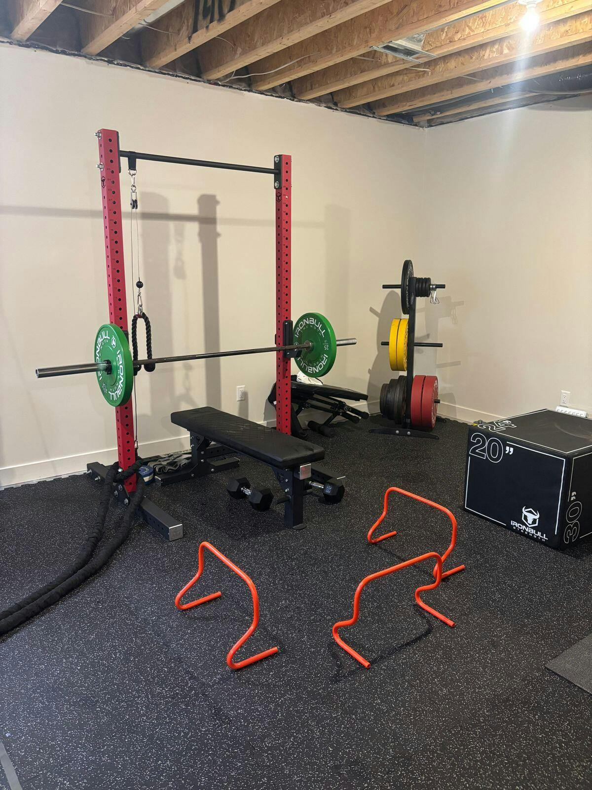 Discover the redesigned SR1 squat rack, enhancing your home gym with new features and customization options. Enjoy maximum stability with a 1,000+lb load capacity, built from durable 3x3 11-gauge steel, numbered 5/8" diameter holes every 2 inches and a ton of attachments. Personalize yours today!