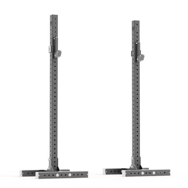 Stripped of unnecessary bulk, each stand offers a streamlined design that delivers exactly what you need: stability, adjustability, and freedom of movement for squats, presses, and bench work.